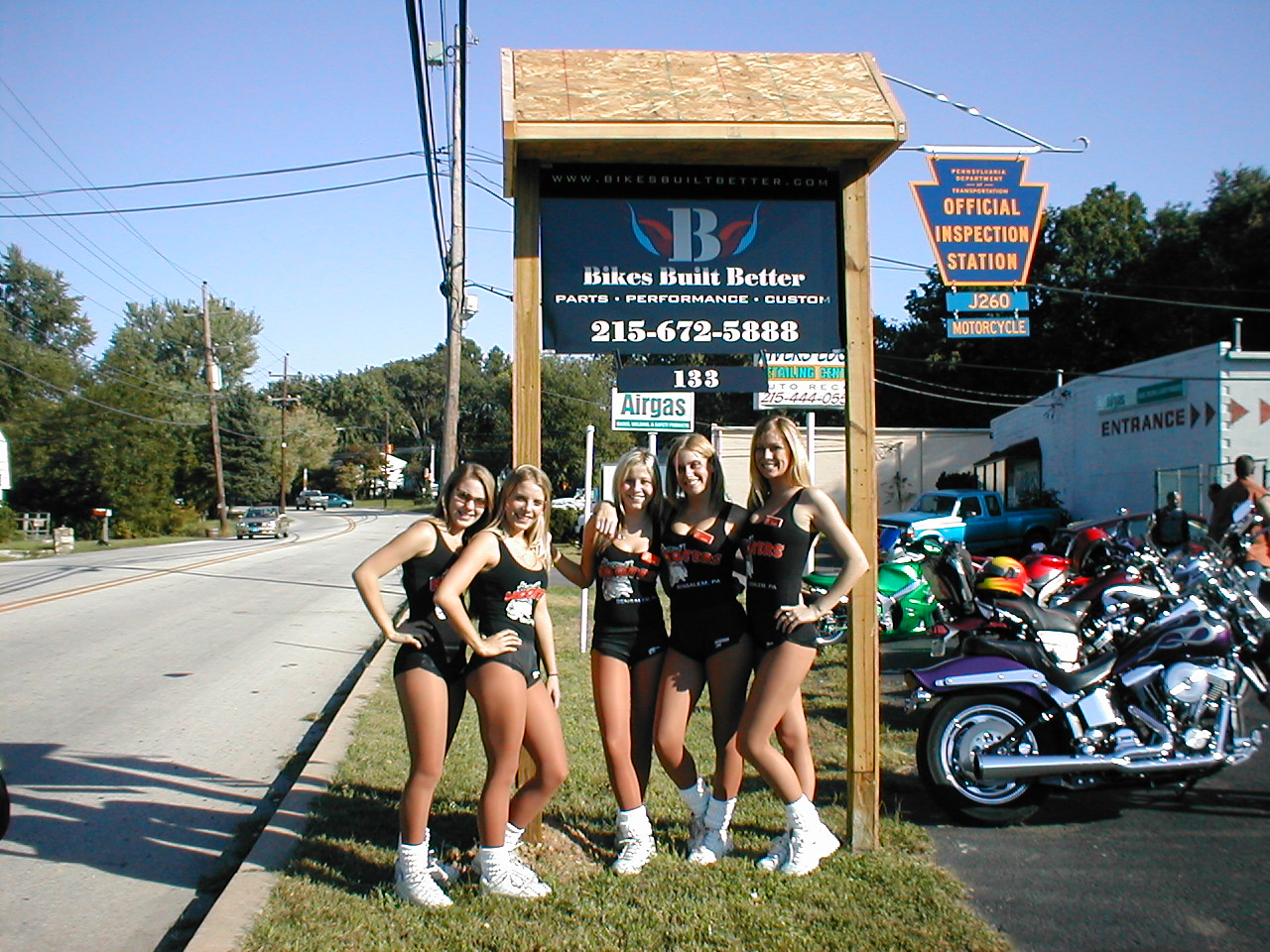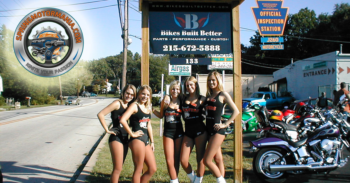 The grand opening that summer brought out the community in a big way — and yes, the Hooters Girls were there. These are the photos from those early days at 133 Horsham Road, the shop that would go on to co-found Spring Motor Mania, host the Horsham Toys for Tots Toy Run, and become a home base for riders across the tri-state area for the next two decades.